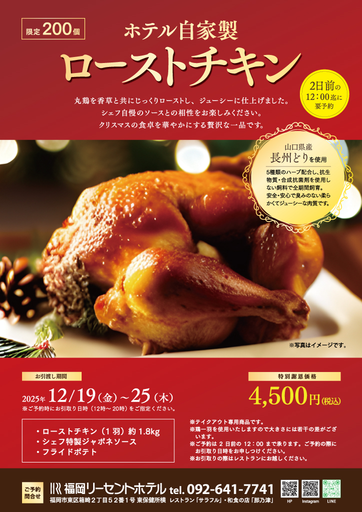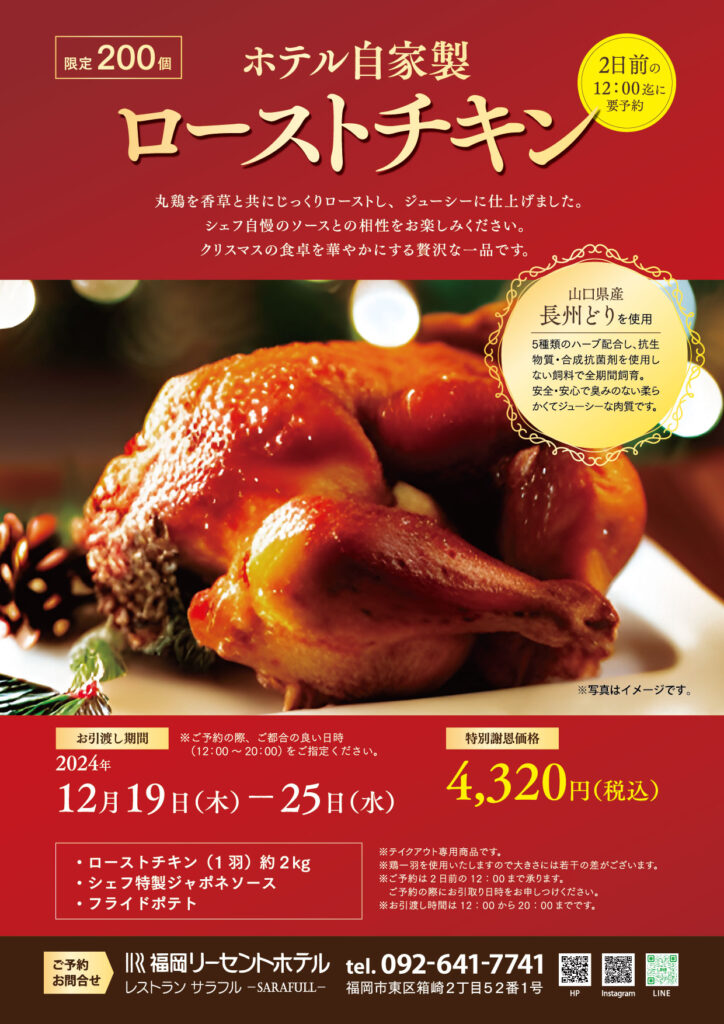 昨年大好評で完売した「ローストチキン」が今年も登場!