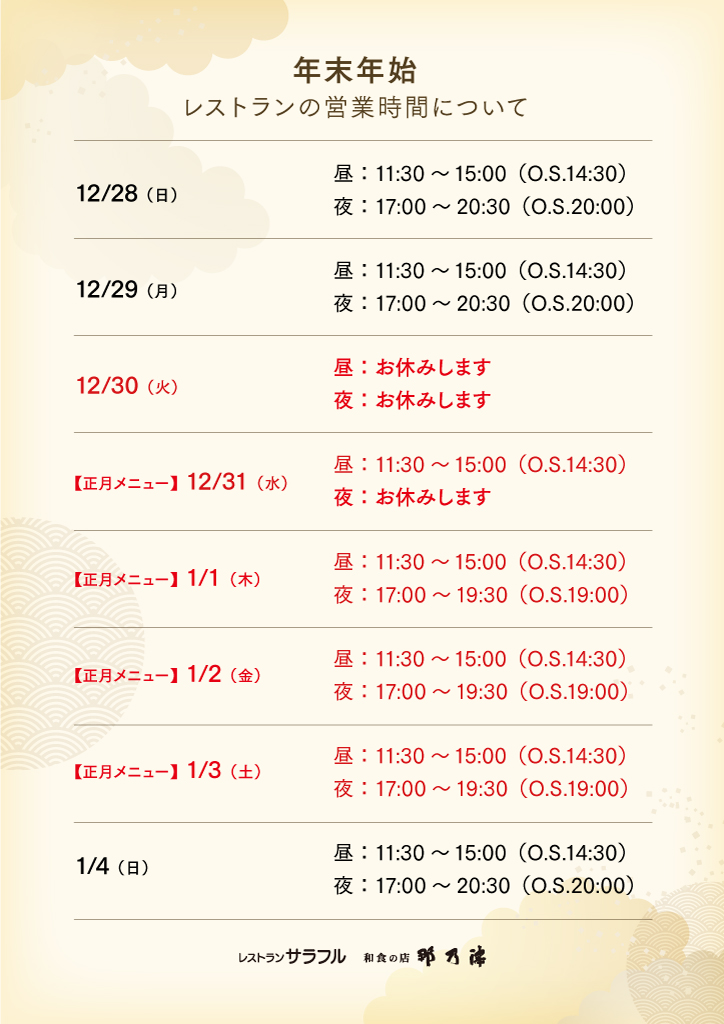 年末年始は特別メニューで営業いたします。